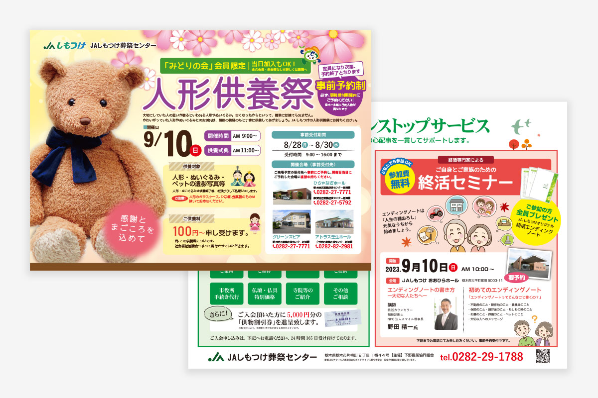 パンフレットや折込チラシ・名刺・看板・ロゴデザインなど。